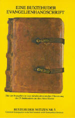 Eine Buxtehuder Evangelienhandschrift Buxtehuder Notizen Nr.5 - Beiträge aus Kultur und Gesellschaft gestern und heute Buxtehude 1992 Die vier Evangelien in einer mittelalterlichen mitteldeutschen Übersetzung des 15. Jahrhunderts aus dem Alten KlosterGröße: 15,5x22,5cm, sehr stabiler Einband ISBN 3-9803270-3-5 |