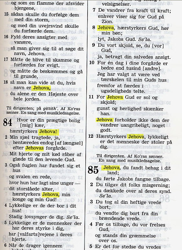 | Ecsodus VI,2,3; Salmau LXXXIII,18: JEHOFAH |