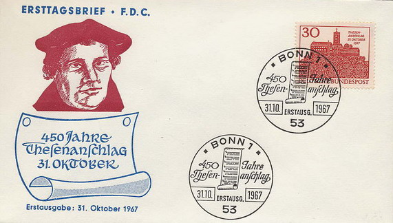 450 Jahre Reformation 1517 1967Stempel: Briefmarkenausstellung - Evangelium und Briefmarke
